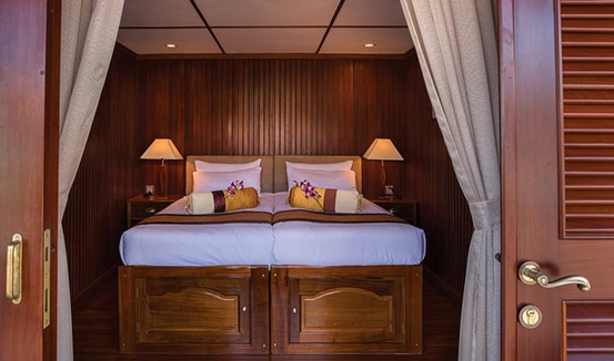 In 2012 she was refitted and lower deck cabins removed in favour of a professional spa, gym, library lounge and office. She is quite justifiably the most splendid ship on the Mekong and the envy of anything that floats by.
